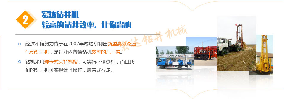 公司將繼續本著一如既往的努力,不斷發展。公司及時解決客戶生產過程中遇到的實際問題。創新文化:永不滿足,超越自我。以最完善的服務來滿足廣大用戶的需求。竭誠與您合作,共創美好明天。產品銷往全國各地,贏得用戶的一致好評,歡迎新老客戶光臨。水井鉆機公司真誠歡迎中外賓朋與本公司建立友誼。產品暢銷三十多個省市,深受廣大